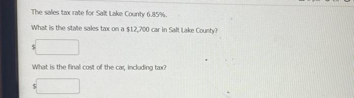 Solved The Sales Tax Rate For Salt Lake County 6 85 What Chegg Com